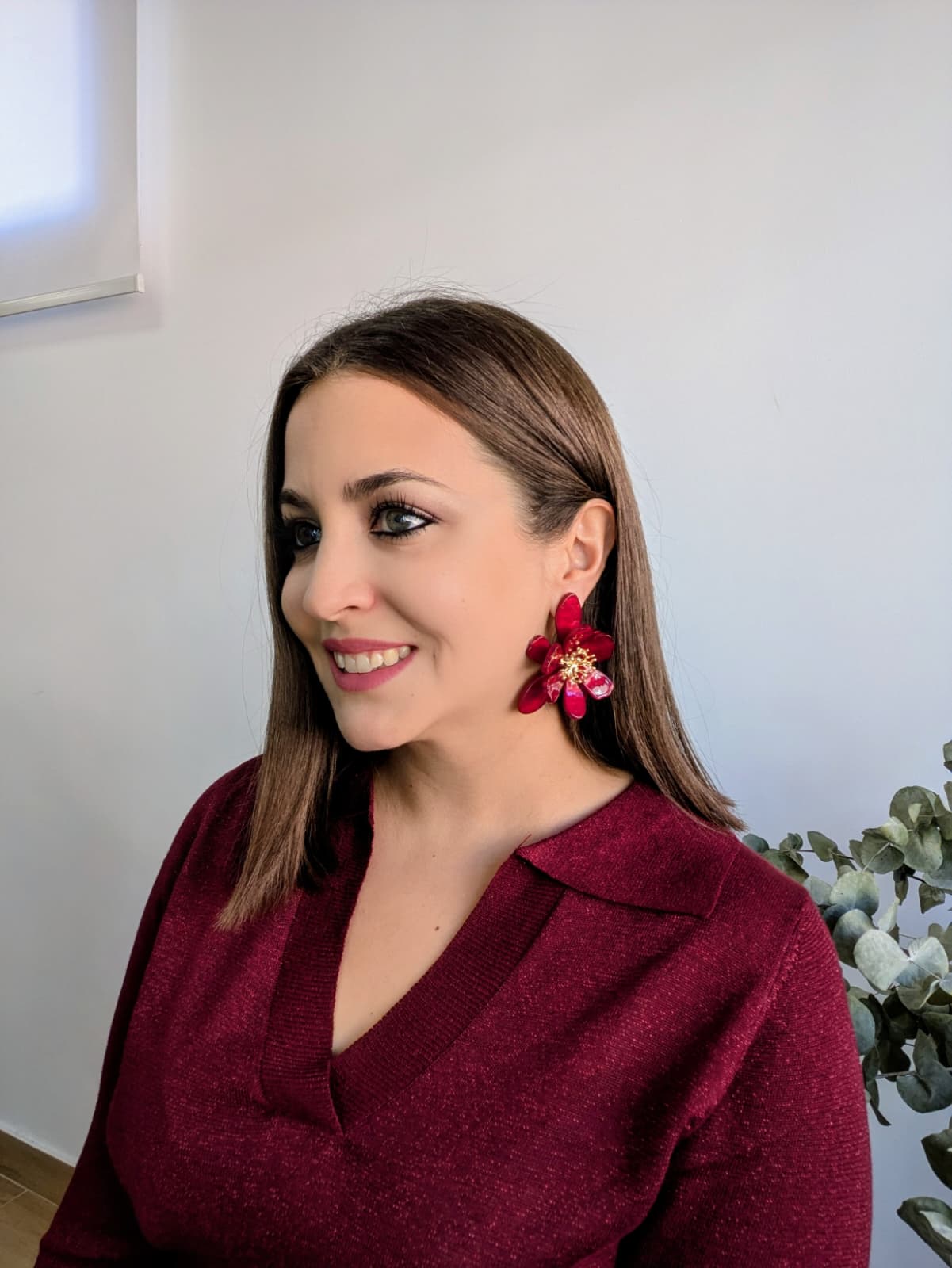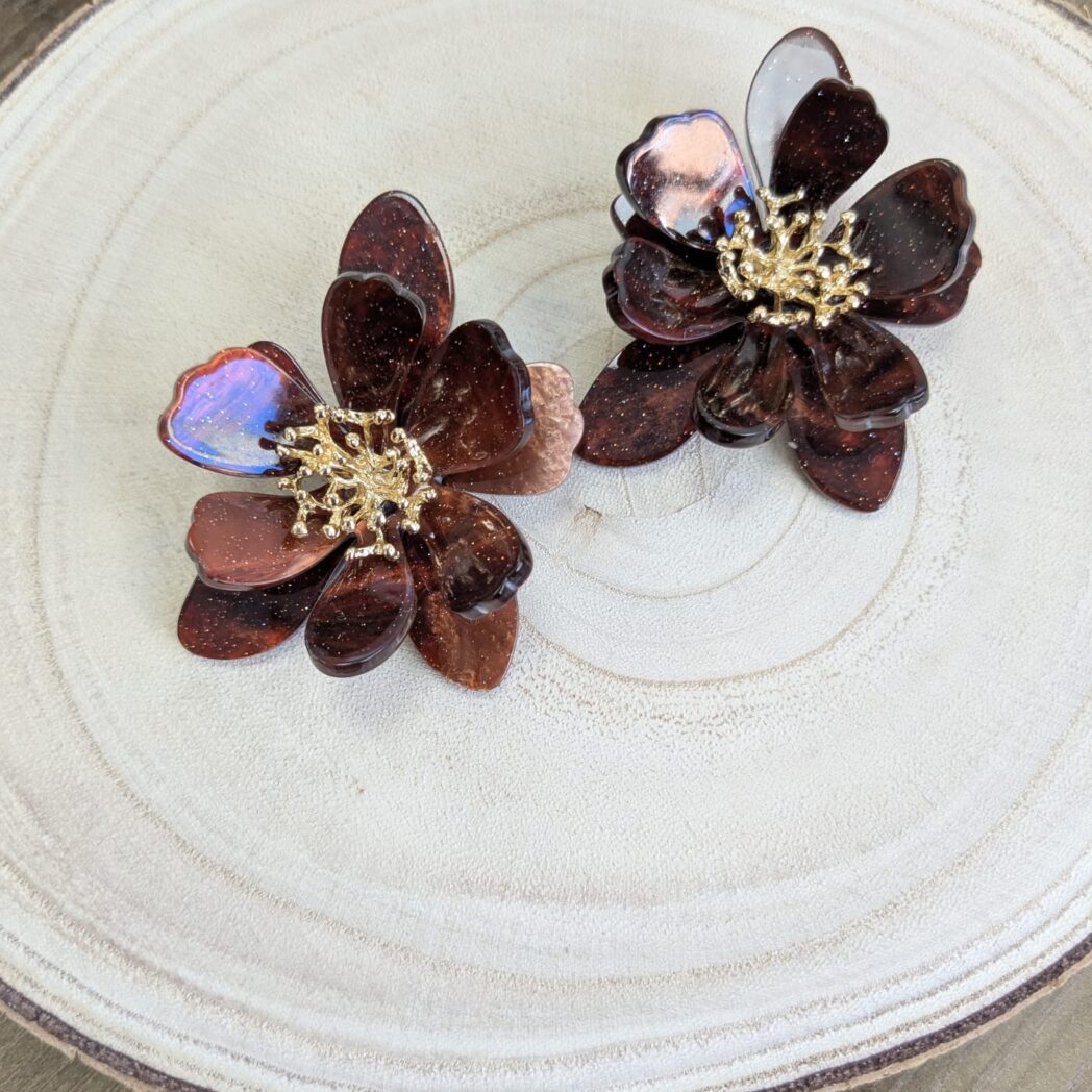 pendiente resina flor burdeos
